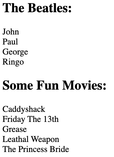 <cfset _map = application.hz1.getMap( "my-map" ) /> <cfoutput> <h2>The Beatles: </h2> <div>#_map.get( "1" )#</div> <div>#_map.get( "2" )#</div> <div>#_map.get( "3" )#</div> <div>#_map.get( "4" )#</div> </cfoutput> <cfset _movieMap = application.hz1.getMap( "movies" ) /> <cfoutput> <h2>Some Fun Movies: </h2> <div>#_movieMap.get( "comedy" )#</div> <div>#_movieMap.get( "horror" )#</div> <div>#_movieMap.get( "musical" )#</div> <div>#_movieMap.get( "action" )#</div> <div>#_movieMap.get( "fantasy" )#</div> </cfoutput>